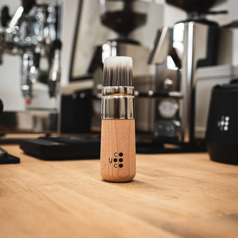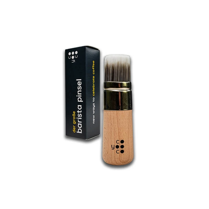 Der COYOOCO Barista Pinsel in der großen Version ist besonders gut geeignet, um direkt nach dem Ausklopfen des Siebträgers Kaffeereste aus dem Sieb zu bürsten. Dank seiner Größe ist mit wenigen Bewegungen die ganze Fläche des Siebs abgeputzt. Es ist kein Geheimnis, dass das saubere Arbeiten an der Espressomaschine wichtig für guten Kaffee ist. Die Reste von altem und feuchtem Kaffeemehl, die vom vorherigen Espresso zurückbleiben, sorgen beim nächsten Espresso für unangenehme Bitternoten. Mit dem großen Barista Pinsel von COYOOCO können diese unerwünschten Reste im Handumdrehen ausgeputzt werden. Der breite Griff mit flachem Ende ist so geformt, dass der Pinsel elegant aufrecht auf der Arbeitsfläche stehen kann.