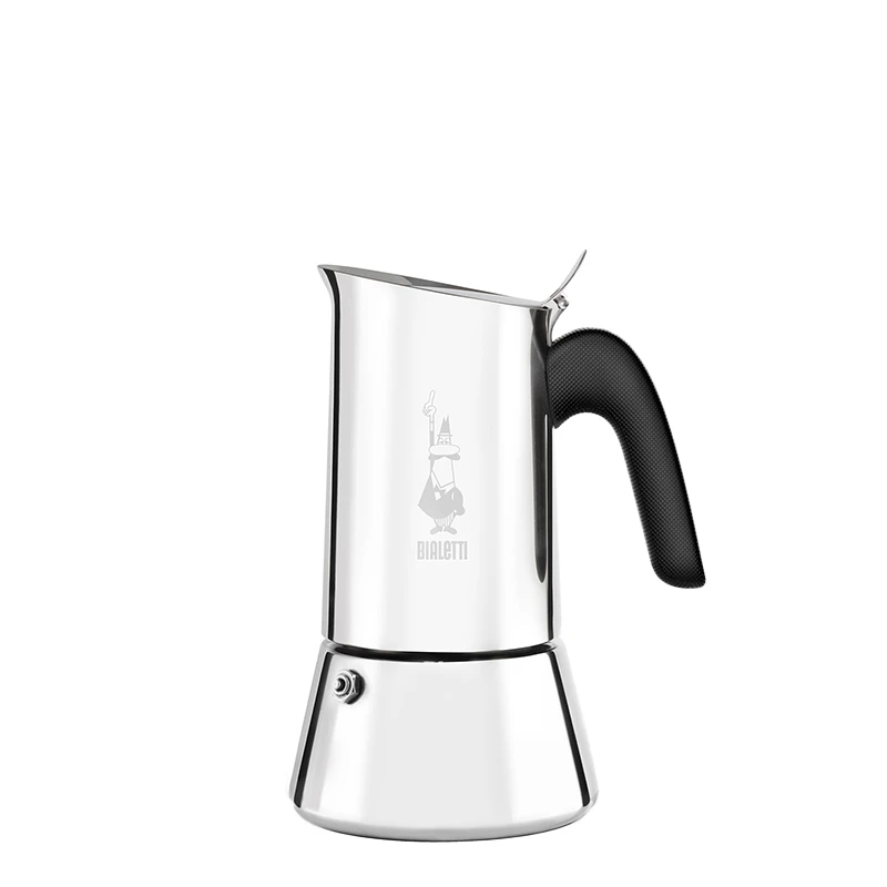 Die Ergebnisse der New Venus erfreuen weiterhin jeden Kaffeeliebhaber. Dieses neue Produkt aus dem Hause Bialetti glänzt mit einigen Neugestaltungen. Der obere Teil des Kaffeezubereiters kommt im neuen Design daher. Der Griff am Deckel besteht bei diesem Modell ebenfalls aus Edelstahl und erstrahlt dadurch im Einklang mit der ganzen New Venus.