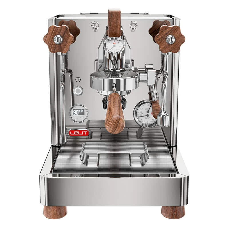 Die LELIT Bianca Siebträgermaschine ist nicht nur technisch auf höchstem Niveau, sondern überzeugt auch durch ihr ästhetisches Design. Die hochwertige Walnuss-Verkleidung verleiht der Siebträgermaschine eine zeitlose Eleganz und macht sie zum Blickfang in jeder Küche. Gleichmäßige Espresso-Extraktionen und eine optimale Temperaturstabilität sind dank der beiden, separaten Edelstahlkessel gewährleistet. Die bewährte Brühgruppe E61 macht die Extraktion zusätzlich optimal und der Druck lässt sich mit dem Paddel oberhalb der Brühgruppe individuell anpassen. Überwachen Sie hier den Druck über beide Manometer. Nach einer Aufheizzeit von bis zu 25 Minuten ist die Bianca Espressomaschine startklar für eine einwandfreie Kaffeezubereitung.