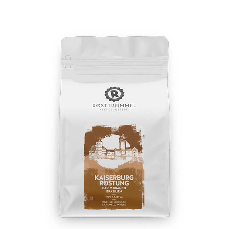 Das Wahrzeichen von Nürnberg ist die Kaiserburg. Dort röstet die Rösttrommel Rösterrei ihre Kaffees schonend und sorgfältig. Der harmonische Filterkaffee hat ausgeprägte, süße Noten von Vanille, Milchschokolade sowie Karamell. Er lässt sich perfekt in der klassischen Filterkaffeemaschine, AeroPress, Chemex, Stempelkanne sowie anderen Filterkaffeebereitern zubereiten.