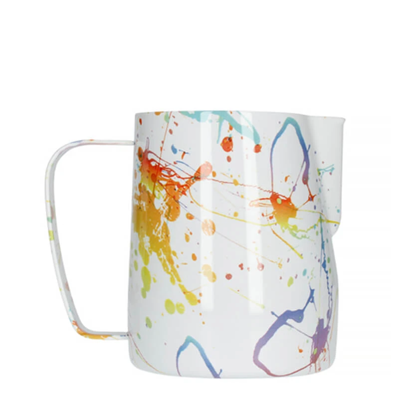 Dieses Milchkännchen von Barista Space begeistert nicht nur mit seinem ausgefallenen Design, sondern auch mit seinen fabelhaften Eigenschaften.Optisch ist das Milchkännchen durch sein modernes Design in Splash-Optik in jeder Küche das absolute Highlight. Charakteristisch besticht es durch hochwertigen, rostfreien Edelstahl, welcher stabil, langlebig und zudem noch bruchresistent sowie farbecht ist.Des Weiteren sorgt das dünne Material für eine sichere ebenso wie optimale Hitzeverteilung. Außerdem ist das Kännchen durch das gewählte Material sehr leicht, was den Ausguss noch angenehmer macht. Filigrane Latte Art Die Exzellenz der Milchkännchen von Barista Space wird daran deutlich, dass Sie von diversen Barista Champions aus der gesamten Welt genutzt und weiterempfohlen werden. Und nicht nur die Barista Champions aus Australien, Brasilien, Frankreich, Griechenland, Großbritannien, Japan, Mexiko, Spanien und der Schweiz sind begeistert. Auch World Barista Champion von 2018, Agnieszka Rojewska, setzt auf die Kannen von Barista Space!Neben den genannten Eigenschaften überzeugt die Profis vor allem die Form des Auslaufs, welcher einen präzisen Ausguss und somit das Zeichnen einer filigranen Latte Art ermöglicht. Hinzu kommt, dass der Griff das Einschenken aus den verschiedensten Winkeln ermöglicht und angenehm in der Hand liegt. Damit steht der nächsten Barista-Session nichts mehr im Wege!