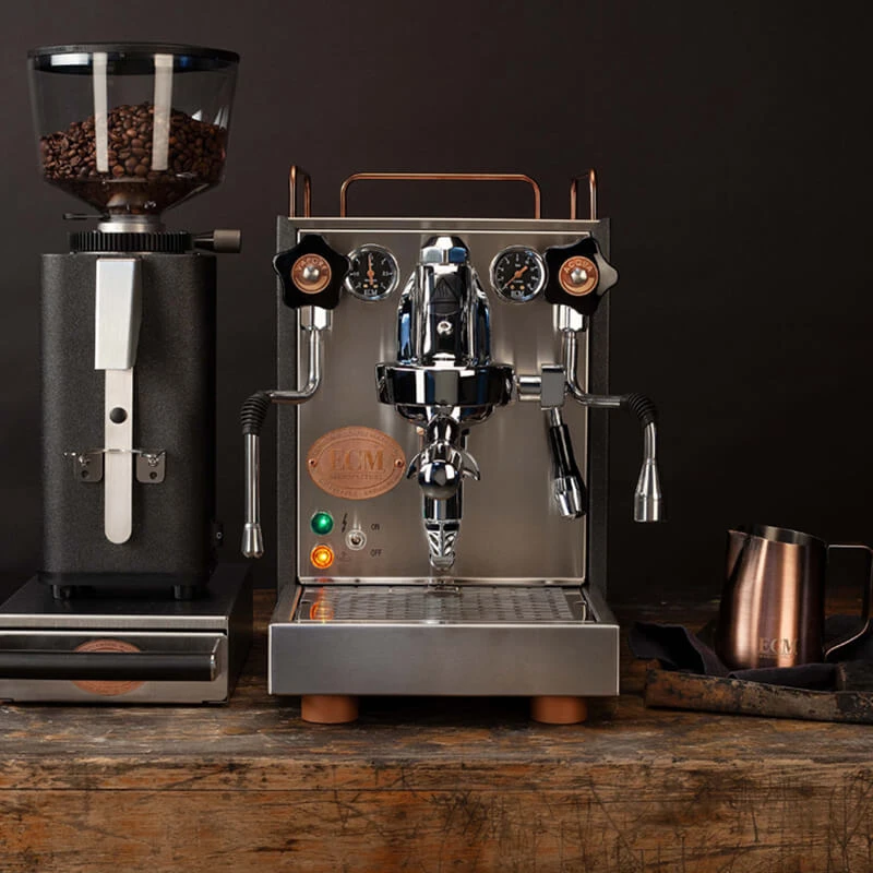 Das ECM Milchkännchen Heritage Line macht die ECM Designkollektion Heritage Line komplett. Die Kupferoptik passt hervorragend zu den entsprechenden Maschinen, welche mit Kupferakzenten daherkommen. Das Milchkännchen von ECM eignet sich hervorragend zum Schäumen und Gießen von Latte Art Motiven. Entscheiden hierfür ist einerseits die Ausgusstülle, welche mit einer Geometrie zwischen spitz und rund liegt und somit sowohl für feine, als auch gröbere Motive geeignet ist. Andererseits hat ECM dem Milchkännchen eine leichte Abschrägung am oberen Rand verpasst, welche dafür sorgt, dass die Spitze besonders nah an die Oberfläche des Getränks geführt werden kann. Je näher zur Oberfläche man gießt, desto klarer wird der weiße Milchschaum sichtbar. Auch der Henkel liegt besonders gut in der Hand, was bei filigranen Bewegungen ein entscheidender Vorteil ist. Die Größe von 450 ml eignet sich perfekt für mittelgroße Milchgetränke. Für Latte Art sollte das Milchkännchen beim Gießen nicht zu voll sein, um möglichst waagerecht nah an die Oberfläche zu kommen.