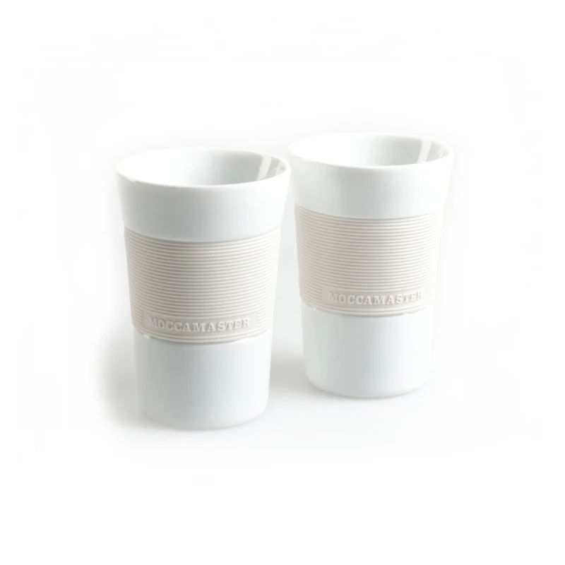 Dieses 2er-Set aus dem Hause Moccamaster umfasst zwei Kaffeetassen, die sich sehen lassen können. Aus weißem Porzellan angefertigt und umschlossen mit einem breiten farbigen Gummiring, sind die Kaffeetassen ein echtes Must-Have für Kaffeeliebhaber. Der Ring in der Mitte sieht nicht nur schick aus, er bietet auch einen besseren Haltekomfort. Durch das doppelwandige Porzellan bleibt das Kaffeegetränk in den Moccamaster Kaffeetassen länger warm. Die minimalistischen Tassen eignen sich für alle, die gerne einen farbigen Akzent setzen. Mit einem Fassungsvermögen von 200 ml eignen sich die Tassen hervorragend für Ihren Filterkaffee oder aber Kaffeespezialitäten, wie zum Beispiel Cappuccino.