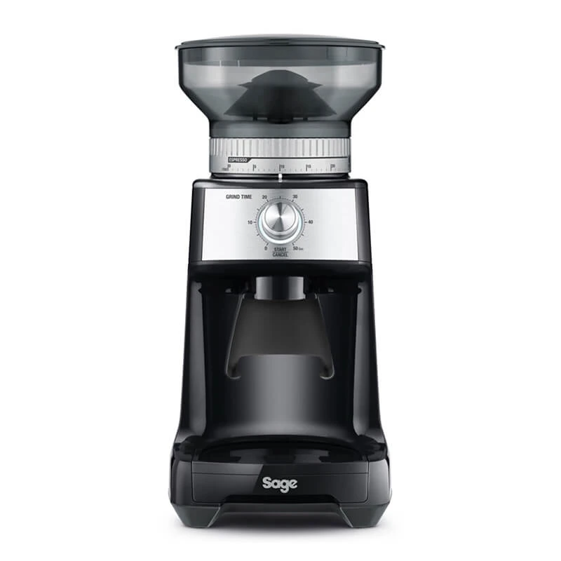 The Dose Control von Sage eignet sich sowohl für die Vermahlung von Espresso Bohnen, als auch von Bohnen für Filterkaffee. Das Edelstahl Kegelmahlwerk verfügt über 60 Stufen der Mahlgradverstellung und bietet so ein hohes Maß an Präzision bei der Wahl der richtigen Körnung. Verstellt wird der Mahlgrad über das große Drehrad unterhalb des Bohnenbehälters. Dank der konischen Anordnung des Mahlwerks entsteht weniger Reibungshitze beim Mahlvorgang, was sich positiv auf den Erhalt der wertvollen Aromen in den Bohnen auswirkt.
