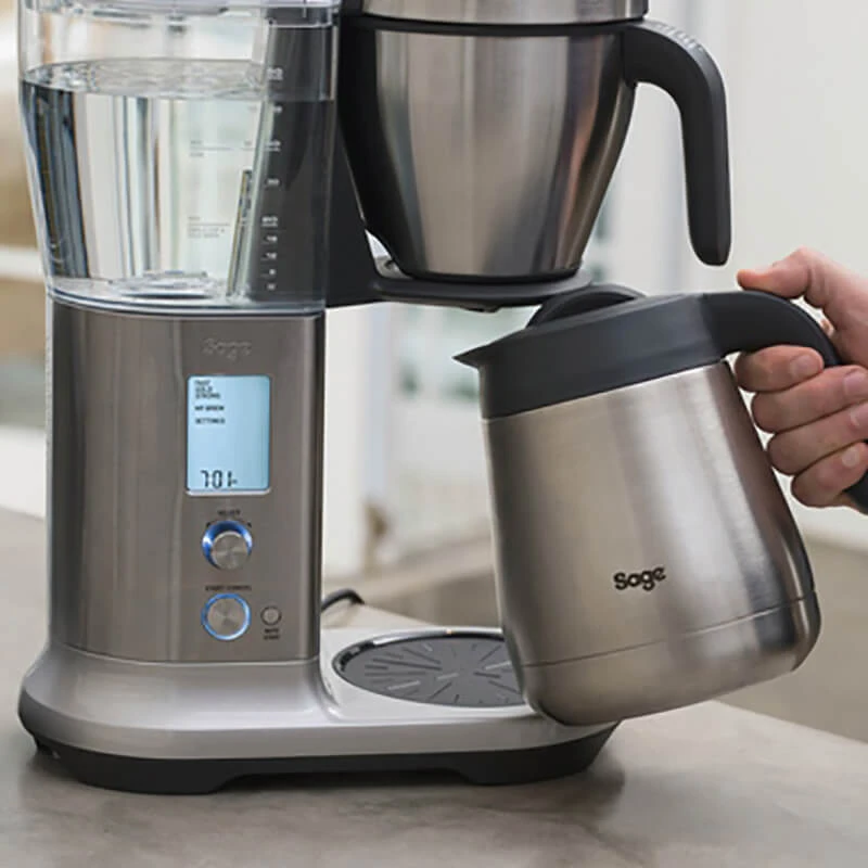 Die Precision Brewer Filterkaffeemaschine von Sage ist die erste der Welt, mit der automatisiert Kaffee in Barista Qualität gebrüht werden kann. Dabei kann aus 6 Voreinstellungen gewählt werden. Hierzu zählen etwa der Gold-Cup-Standard, Pour Over, Fast, für einen besonders schnellen Brühprozess, sowie ein Cold Brew Modus.