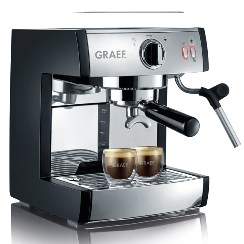Die Graef Salita ist eine kompakte Siebträgermaschine. Das hochwertige Kunststoffgehäuse wird mit einem Edelstahlband optisch aufgewertet und unterstreicht das moderne Design der Salita.