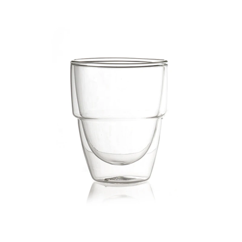 Beim Stack Glas ist der Name Programm. Das Design des renommierten Designers Georg Fontana ist so gestaltet, dass das Glas in der äußeren Glaswand einen Knick hat, sodass der untere Teil einen geringeren Durchmesser hat. So lassen sich ohne Probleme vier bis fünf der Gläser platzsparend stapeln. In der transparenten Ausführung kommt die Farbe des Getränks besonders gut zur Geltung.