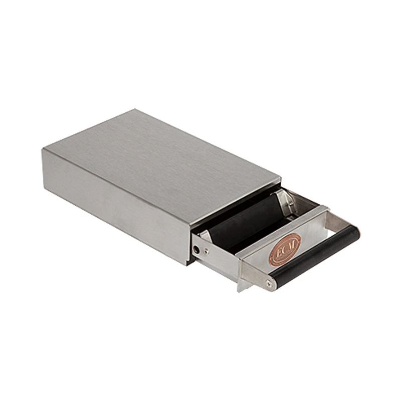 Mit der Heritage Line hat ECM eine neue Design-Kollektion geschaffen, welche aus Espressomaschine, Mühle, dieser Sudschublade und einem Milchkännchen besteht. Statt auf verchromten Hochglanz setzt die Heritage Line auf satinierten Edelstahl in Kombination mit anthrazit und kupferfarben. Auch die Sudschublade ist in satiniertem Edelstahl gehalten und hat vorne ein kupferfarbenes ECM-Emblem, sowie einen mattschwarzen Griff. So fügt sie sich nahtlos in die Optik der Heritage Line ein.
