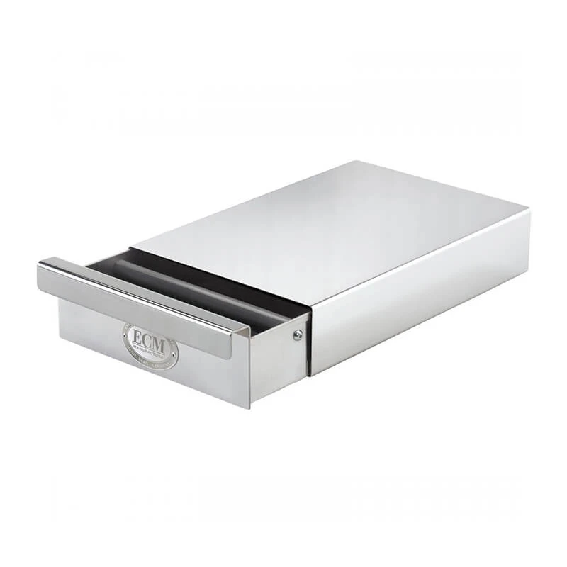 Diese Sudschublade von ECM ist ein echter Hingucker in Ihrer Küche und besitzt ein hohes Maß an Funktionalität. Die Schublade lässt sich leise und komfortabel ein- bzw. ausziehen und der gummierte Abklopfstab ermöglicht ein geräuscharmes und schonendes abklopfen des Siebträgers. Die Verarbeitung ist, wie bei allen ECM-Produkten, besonders hochwertig und grenzt an Perfektion. Optisch ist diese Sudschublade klassisch gehalten und fügt sich so perfekt in das Bild zu Ihrer ECM-Mühle und ECM-Espressomaschine ein. Auf der Sudschublade können Sie ideal Ihre Mühle platzieren und haben somit zusätzlich ein Platzersparnis in Ihrer Küche.